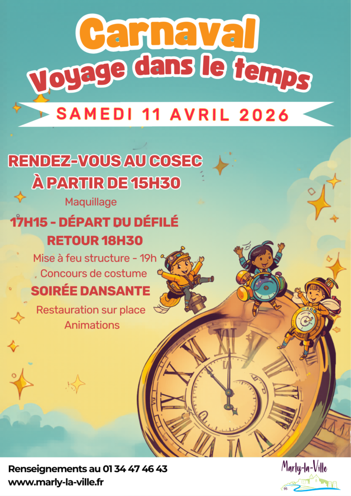 Ambiance voyage dans le temps au carnaval le samedi 11 avril ! Préparez vos plus beaux costumes et embarquez pour un voyage à travers les époques à l’occasion du carnaval de Marly-la-Ville ! Des temps préhistoriques au futur, en passant par le Moyen Âge ou les années rétro, laissez libre cours à votre imagination pour […]